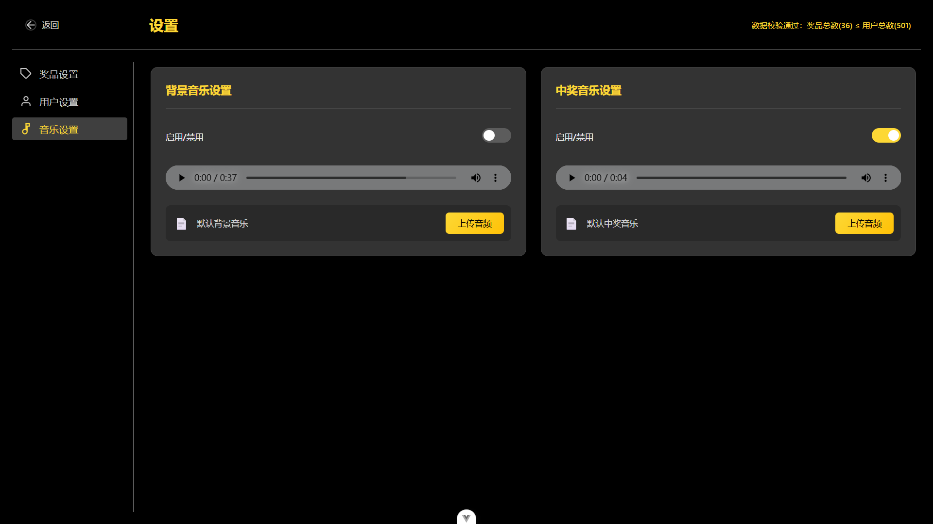 音乐设置,可设置背景音乐,中奖音乐